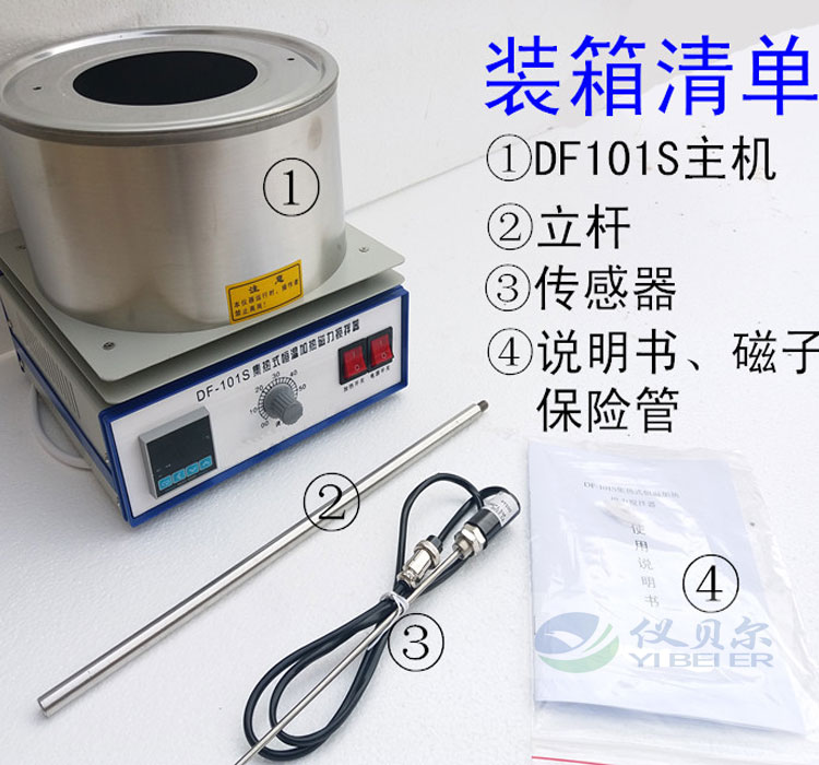 1、先拿开集热罩,清理锅内杂物。安装好立杆,将所有夹具固定在立杆上,然后将电源线插好后,再将盛有溶液的容器放入锅内中心位置,盖上集热罩,固定好容器,最后把温度传感器探棒用万用夹固定后,调整上下位置,使测温头置入液体中,然后放入大小适当的搅拌子即可。