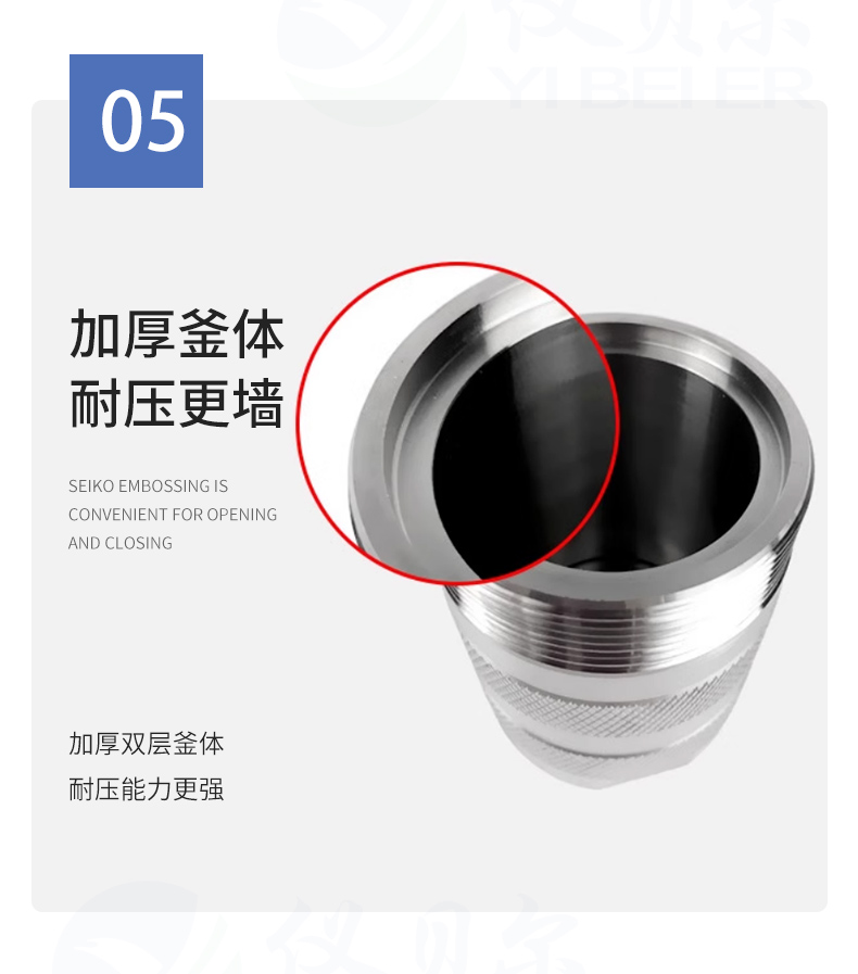 5.可代替铂坩埚解决高纯氧化铝中微量元素分析的溶样处理问题。防爆式水热合成反应釜压力消解罐50ml