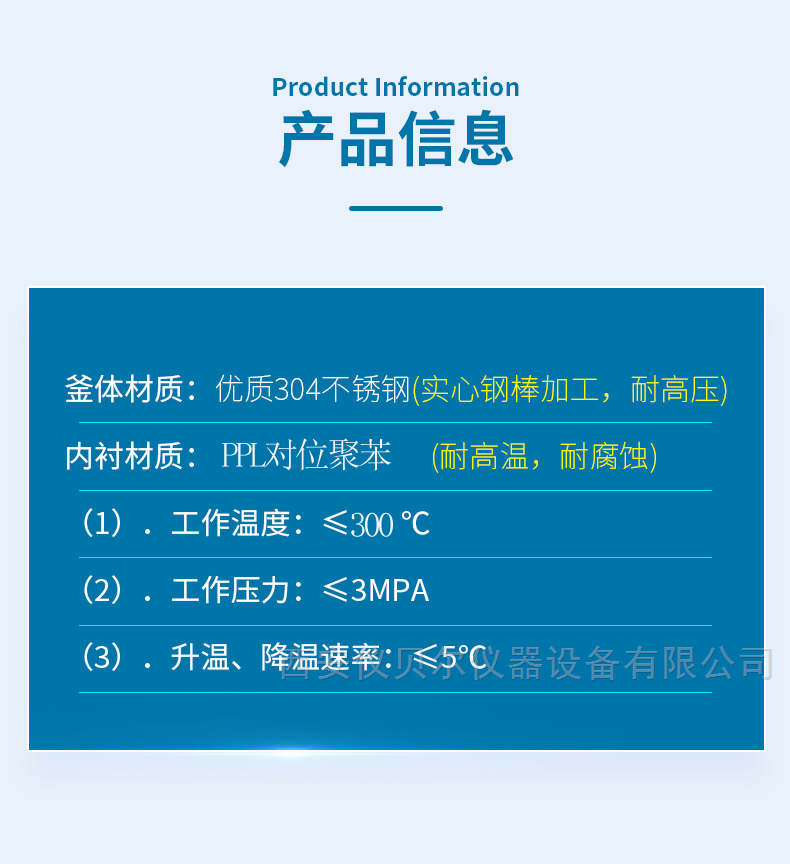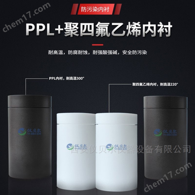 PPL高温水热合成反应釜内衬 PPL高温水热反应釜密封高压PPL内衬消解罐 是为在一定温度、一定压力条件下合成化学物质提供的反应器。它广泛应用于新材料、能源、环境工程等领域的科研试验中,是高校教学、科研单位进行科学研究的常用小型反应器。 主要特点: 本水热合成釜采用优质不锈钢加工而成。釜体与釜盖密封采用耐用、可靠的线密封结构,密封效果长期稳定无泄漏。 釜盖紧固结构采用均置螺栓、并辅以釜体定位装置,以利合成釜的开启与密闭。 本水热合成釜采用外加热方式,以缩小体积,并有利多反应釜处于同一反应操作温度(如将多个反应釜置于烘箱中加热) 水热反应釜密封高压四氟内衬消解罐 主要技术指标: 1.工作温度:≤280℃ 2.工作压力:≤3MPa(表压) 3.升温、降温速率:≤5℃/min 产品规格:规格5ml,10ml 15ml,25ml,30ml,50ml,80ml,100ml,150ml,200ml,250ml,300ml,500ml,1000ml另可根据用户需求定做。 PPL高温水热合成反应釜内衬